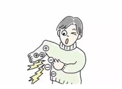 日常生活中,活动的时候,皮肤和衣服会相互摩擦,衣服上的原子就失去电子,于是原子核的内外电荷不平衡,就显电性。特别是秋冬季节,天气、皮肤干燥,身上产生的电荷不能及时被带走,越积越多,这些电荷就会移到衣服表面比较高的地方集中起来(如衣服上的线头或竖起的棉丝,又如避雷针就是采用这样的原理),一旦遇到与它们电性相反的电荷,就会放电。
