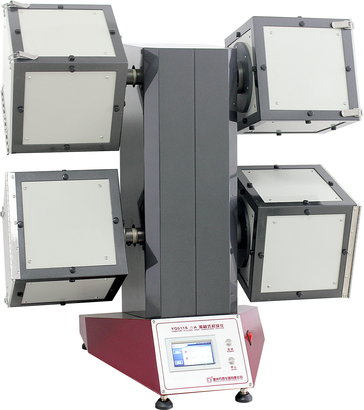 YG511S-IVA滚箱式起球仪 ISO 12945.1 , BS5811,GB/T4802.3 ,IWS TM152,JIS L1076等标准。